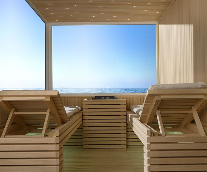 Custom Finnish Sauna A60 Class — safety and luxury at sea.