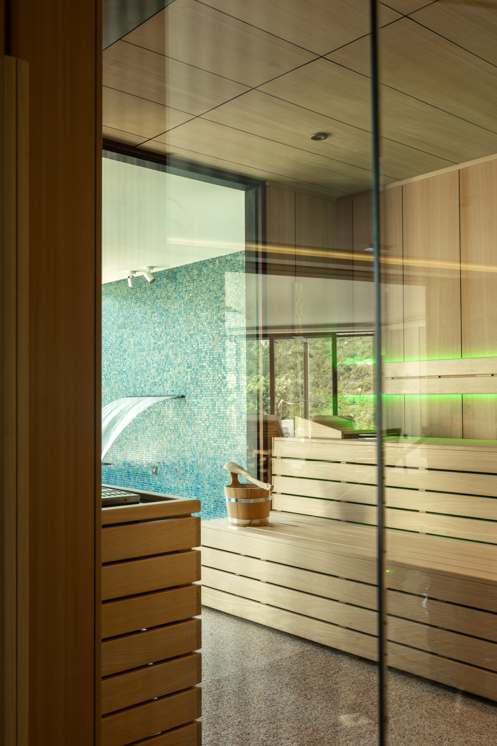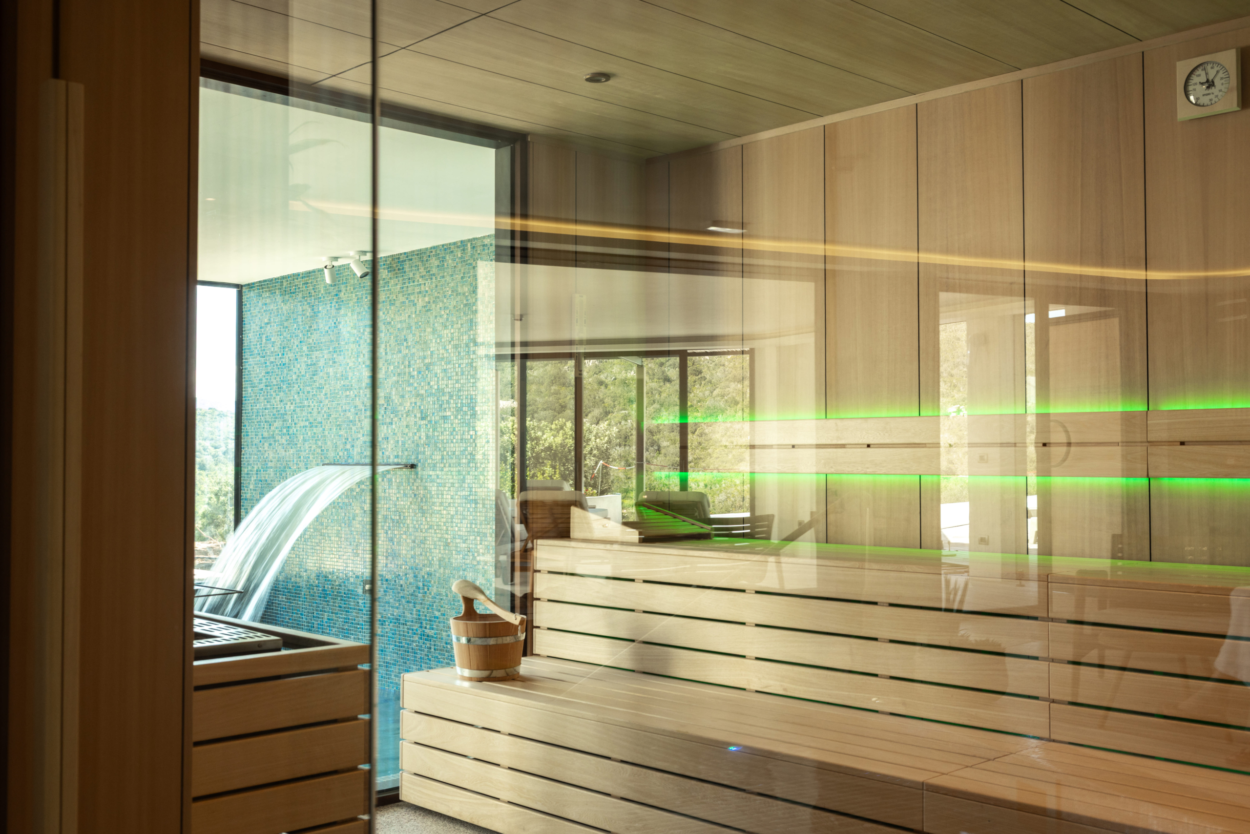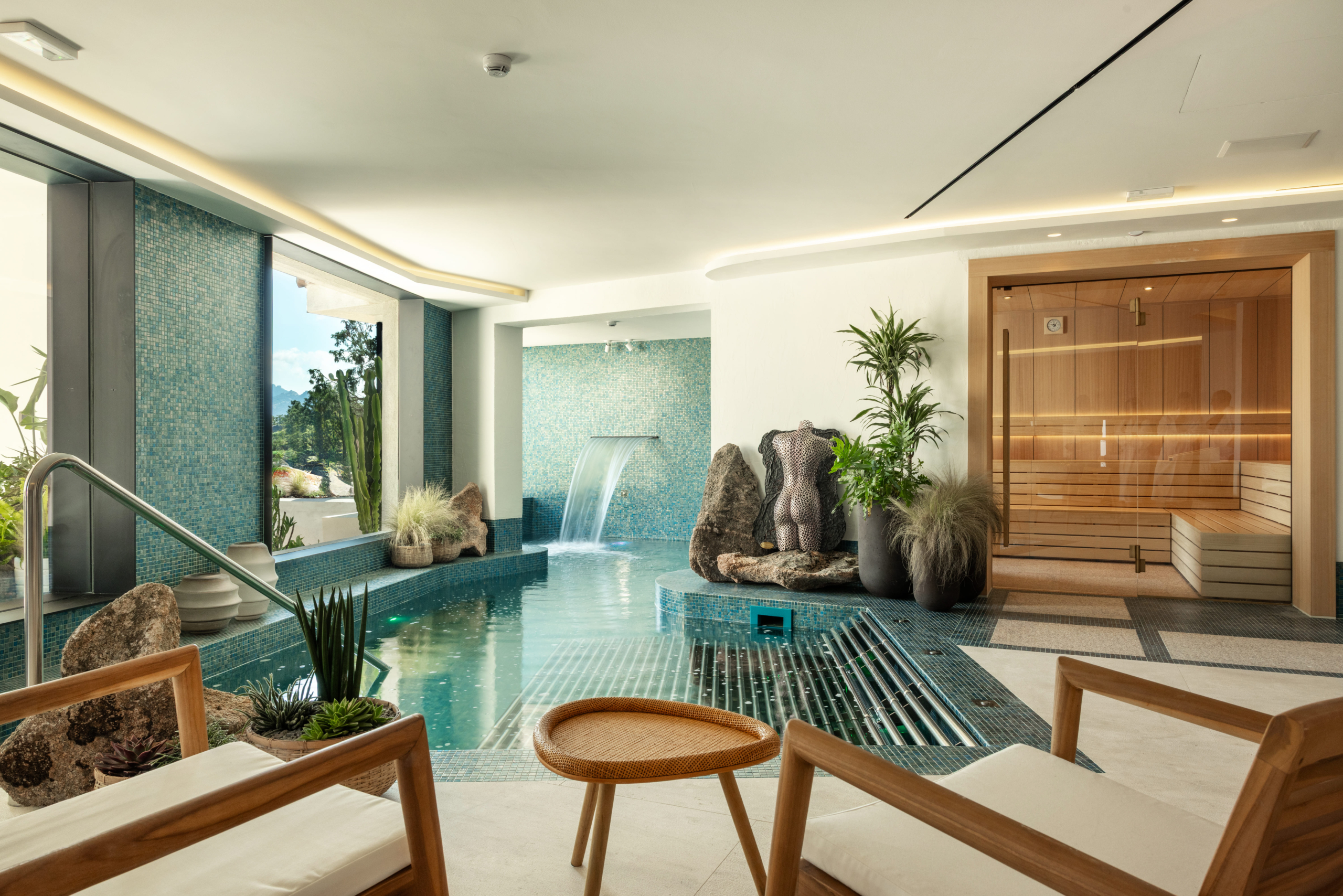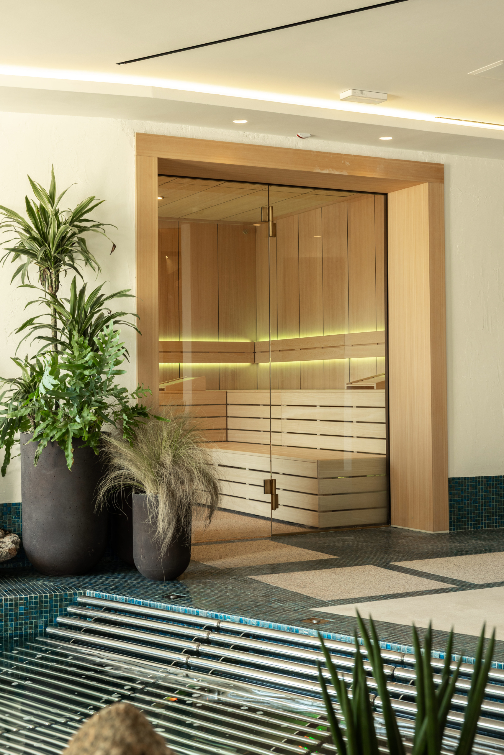 The SPA will include a large Dream Collection hammam, with Calacatta Gold porcelain wall cladding and Corian White bridge benches. Naturally, it will also feature the SPA’s queen: the Finnish sauna. For this project, the Sensation Corner Sauna was chosen, with two fully glazed walls and a complete Thermowood finish. A captivating emotional shower path with six shower heads will complete the experience.