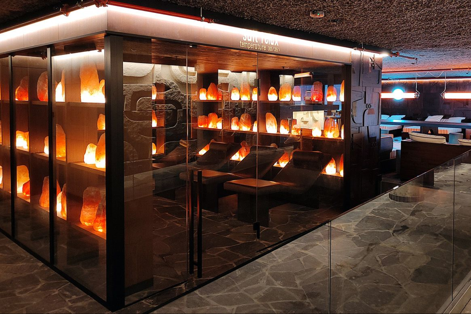 The wellness journey is completed with a stunning path of emotional showers and a beautiful salt relaxation room, rounding out the design and construction of this exceptional wellness center in Brussels.