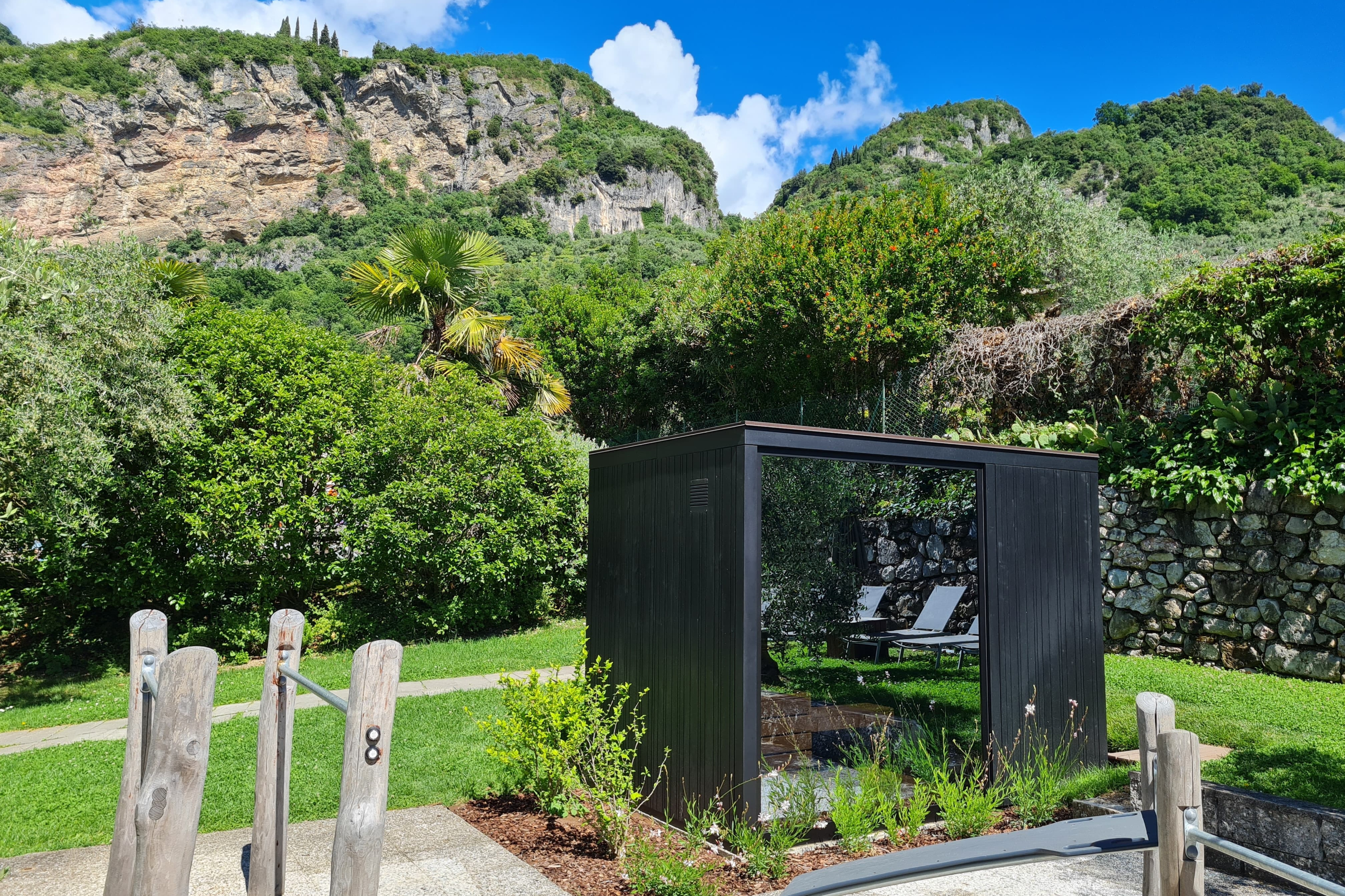 Per Hotel La Gioiosa a Riva del Garda, in provincia di Trento, Carmenta ha realizzato una bellissima Sauna finlandese da esterno per Hotel con spogliatoio. Il modello è la nostra nuova PANORAMA OUTDOOR, una sauna da esterno con spogliatoio dedicato.