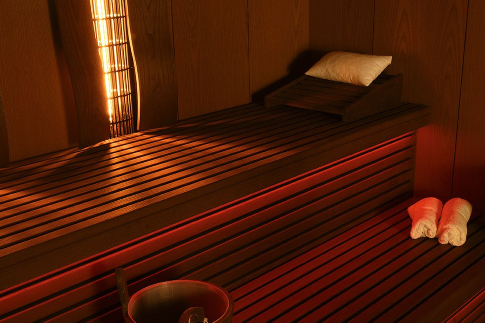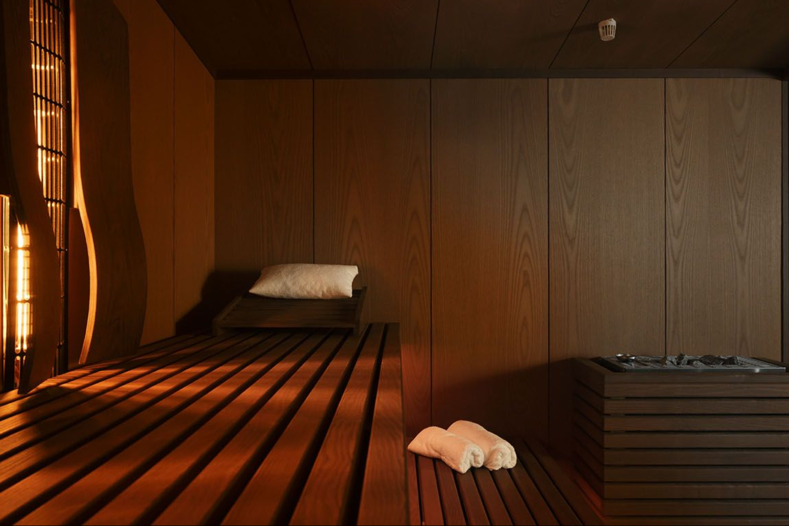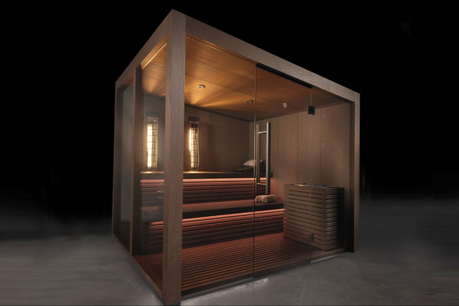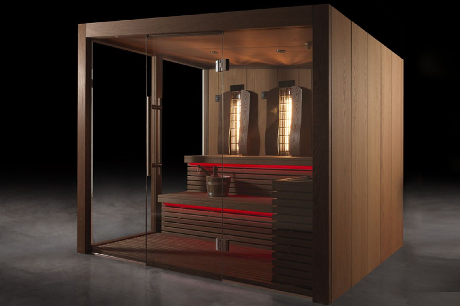 The cabin incorporates large glass panels to enhance natural light during the session. This solution is ideal for private residences, spas, or wellness centers, adding a touch of elegance while making the sauna feel bright, spacious, and inviting.