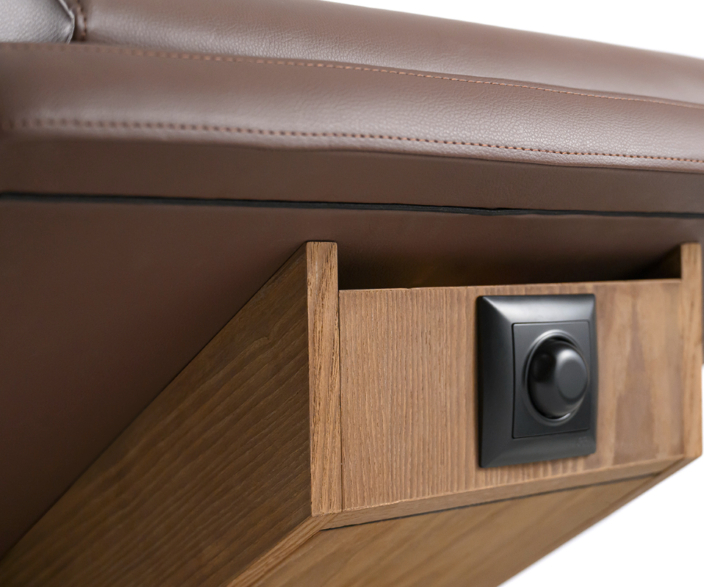La struttura in legno Thermowood e la superficie imbottita in eco-pelle tecnica assicurano un’elevata durabilità e una resa estetica raffinata.