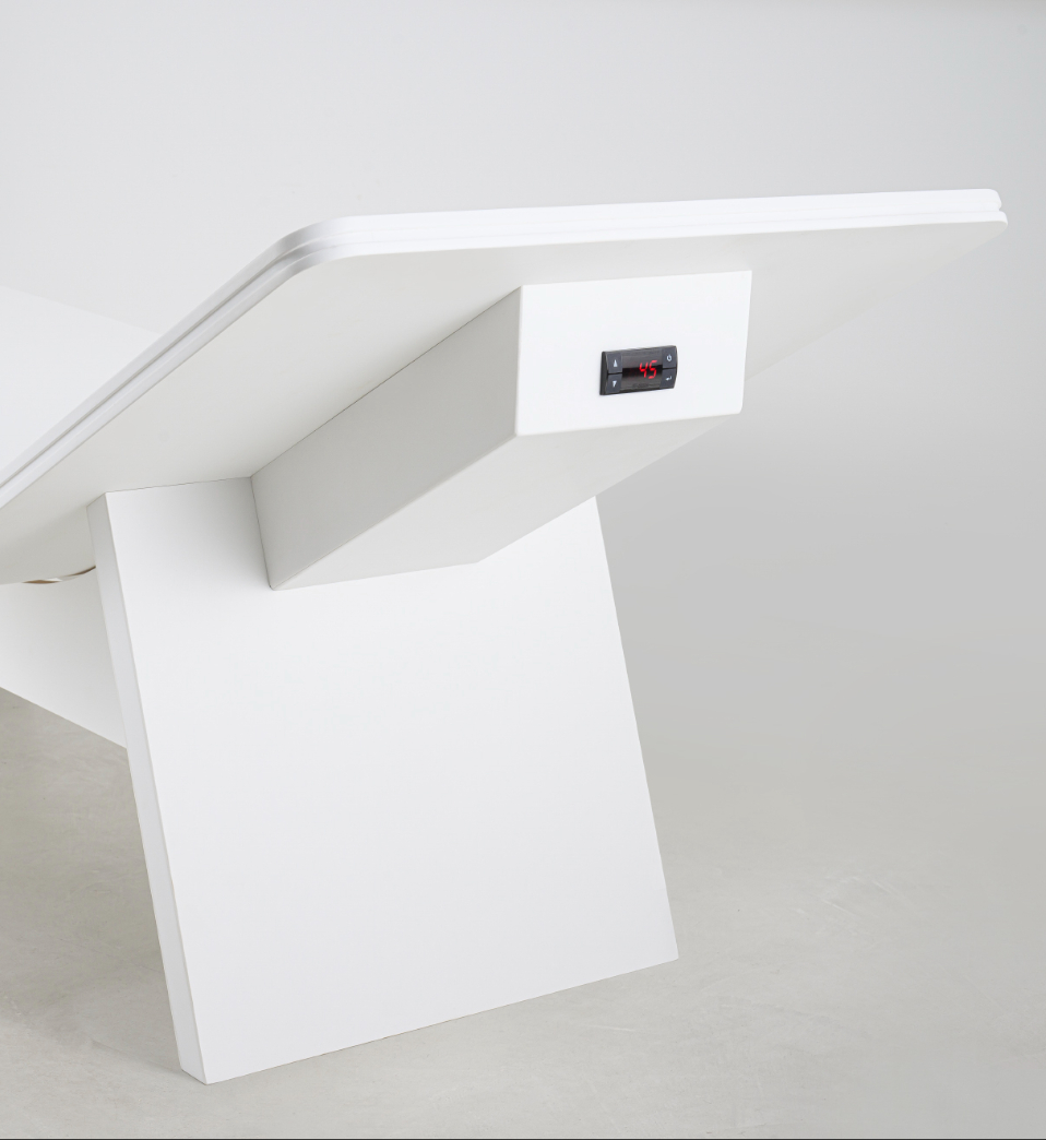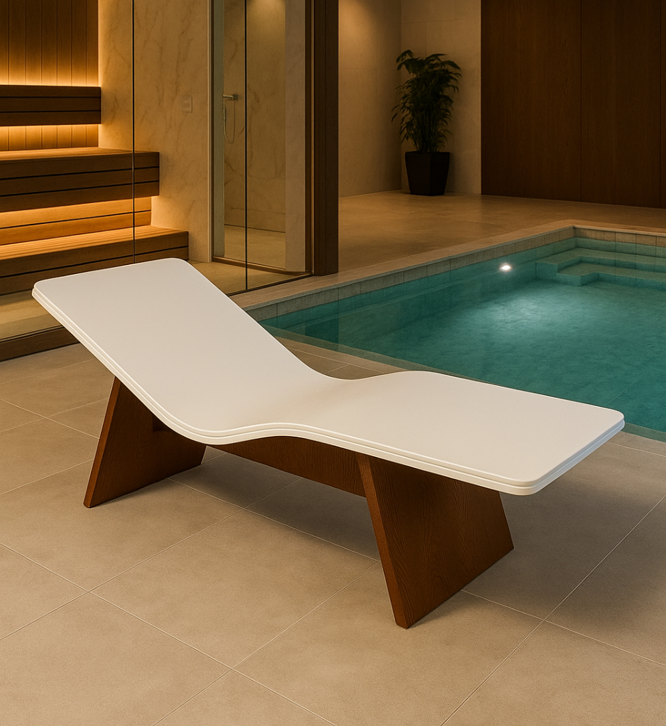 Progettata per spa e aree relax di fascia alta, la Comfort Heated Solid Surface coniuga tecnologia di riscaldamento integrata e linee scultoree minimaliste, offrendo un’esperienza di relax profondo e continuo.