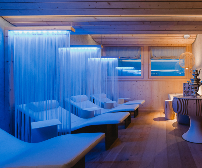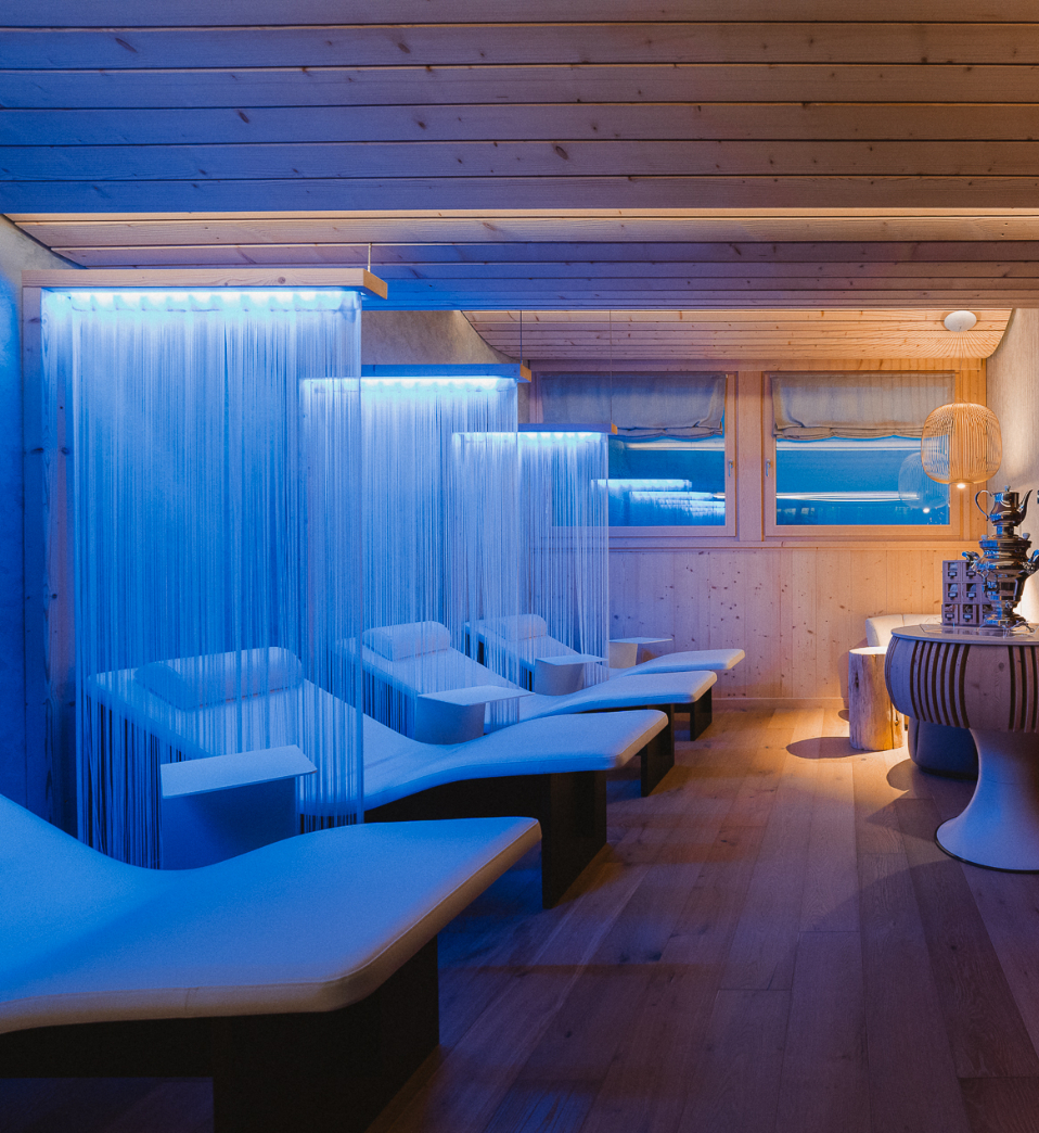 Ogni dettaglio è studiato per offrire un’esperienza di benessere silenzioso e personalizzato, ideale dopo una sauna o un bagno di vapore.