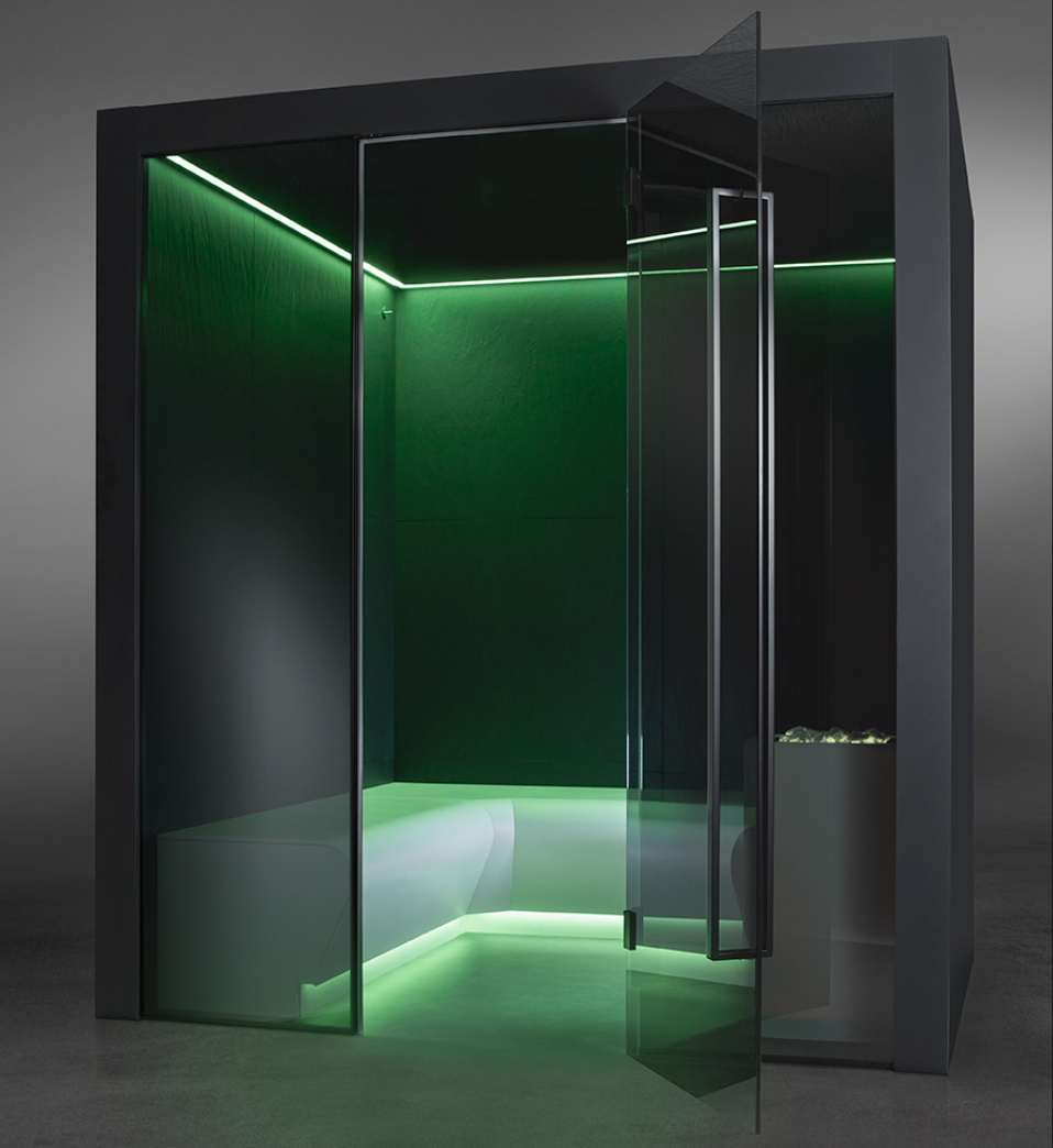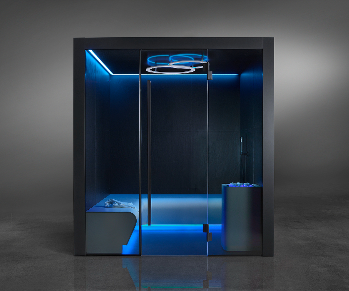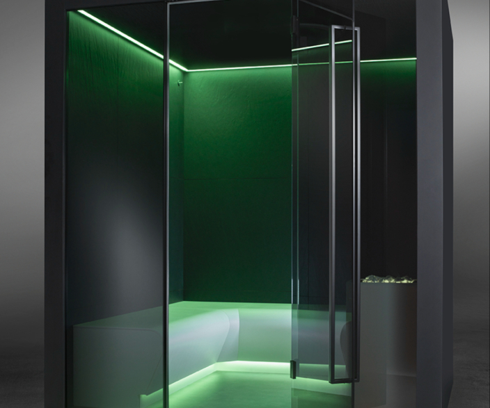 Infinity è una cabina che trascende il concetto di bagno turco tradizionale, offrendo un’esperienza immersiva e personalizzata, in cui luce, calore e materia dialogano in perfetto equilibrio.