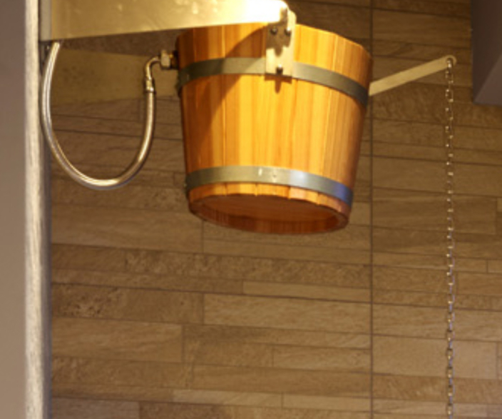 Il tradizionale secchio finlandese per una cascata d’acqua fredda intensa e rinvigorente.