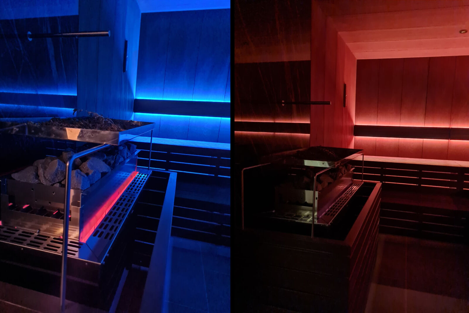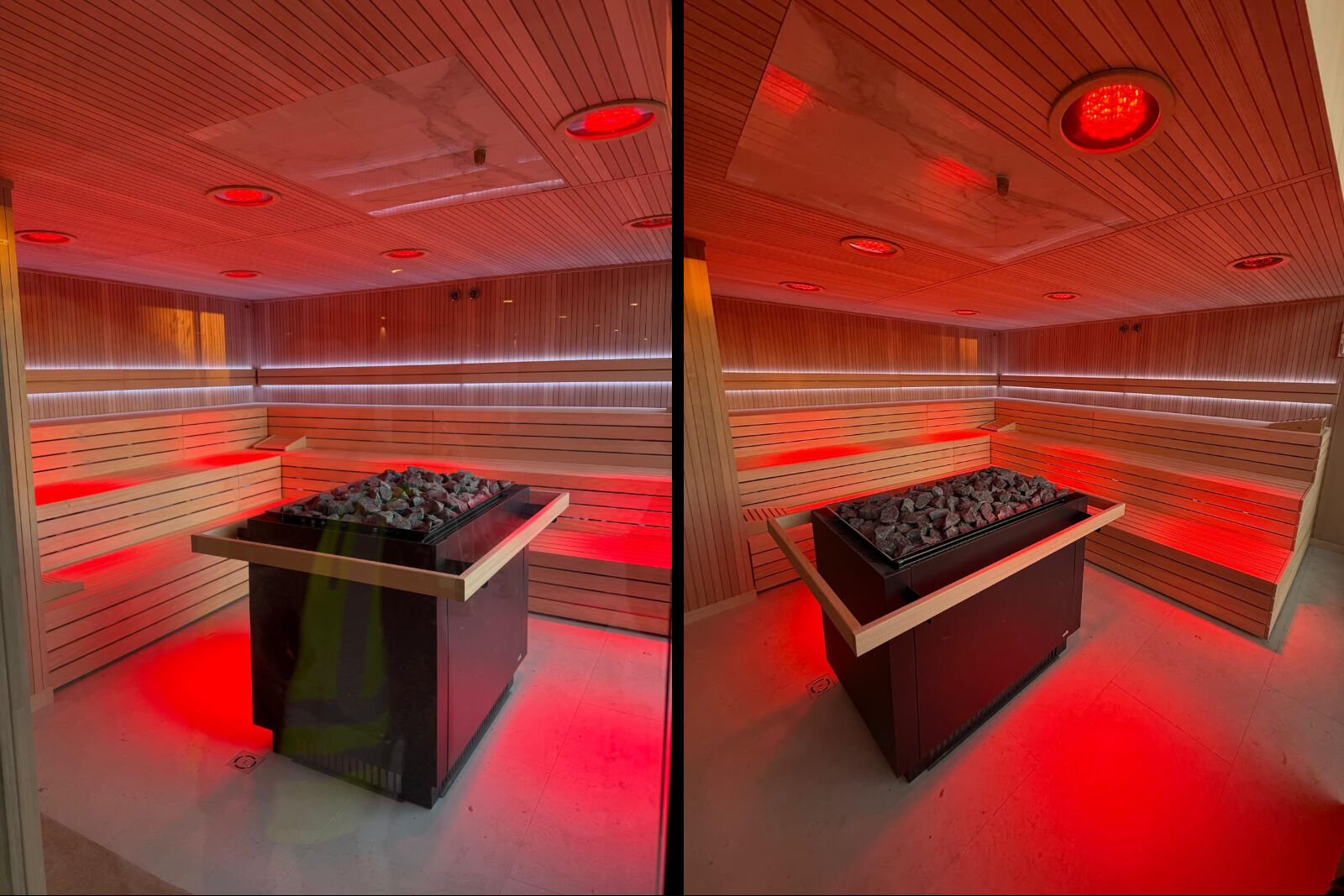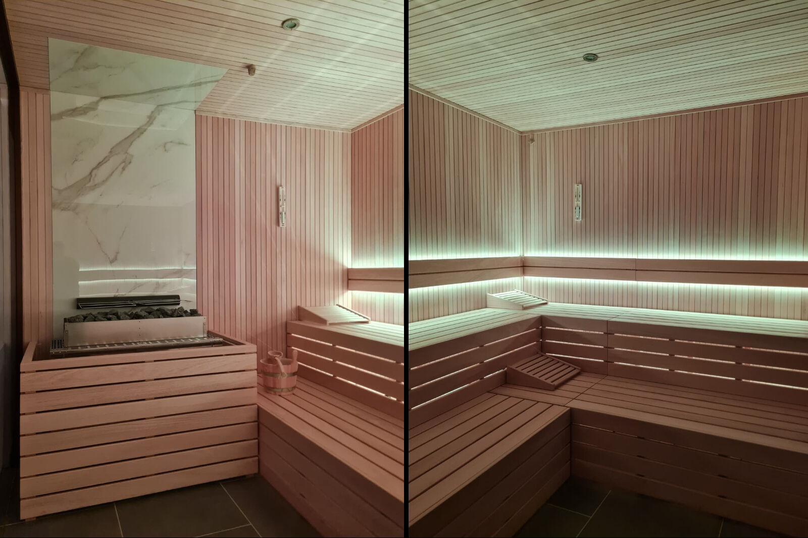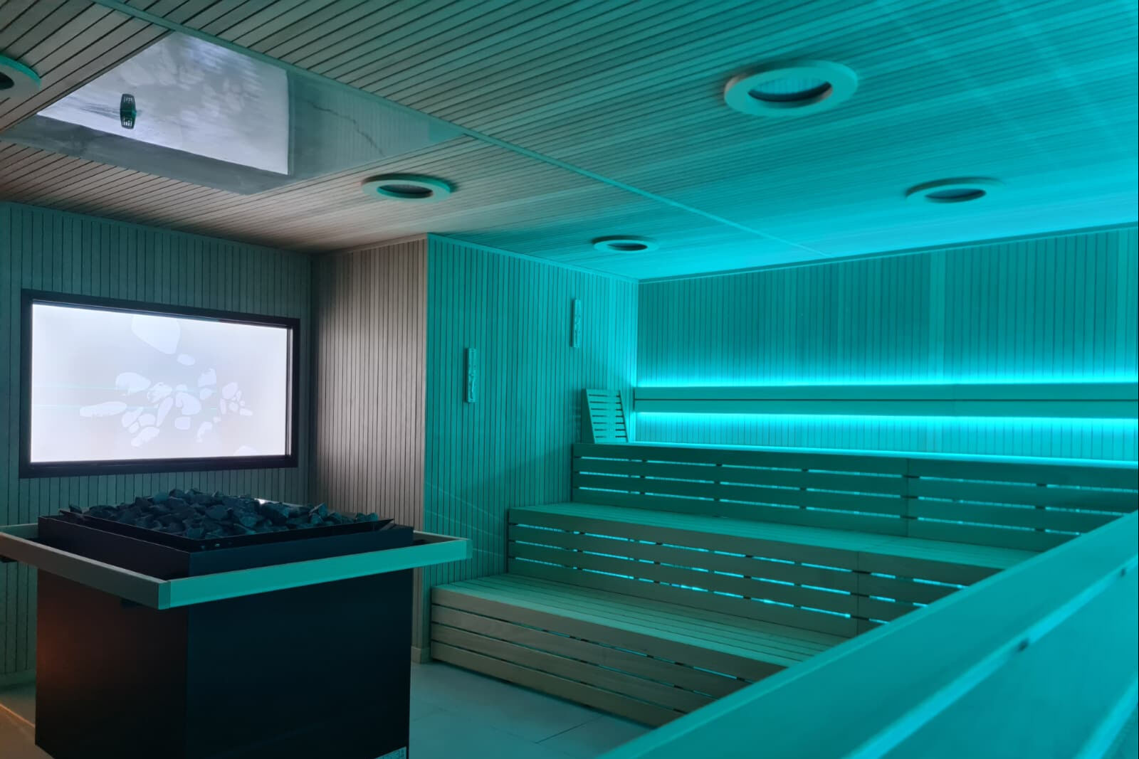 L’event sauna, elemento centrale del progetto, è stata progettata per accogliere sessioni guidate e rituali wellness, diventando un vero punto focale dell’esperienza spa.